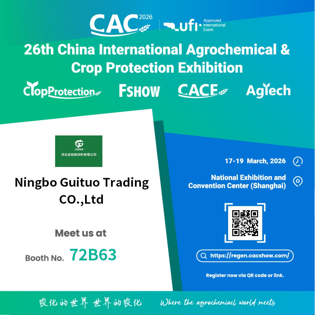 Ningbo Guituo Trading Co., Ltd. är stolta att meddela sitt deltagande i 26:e China International Agrochemical & Crop Protection Exhibition (CAC 2026) . Detta prestigefyllda globala evenemang kommer att äga rum från kl 17 till 19 mars 2026 , på National Exhibition and Convention Center i Shanghai.